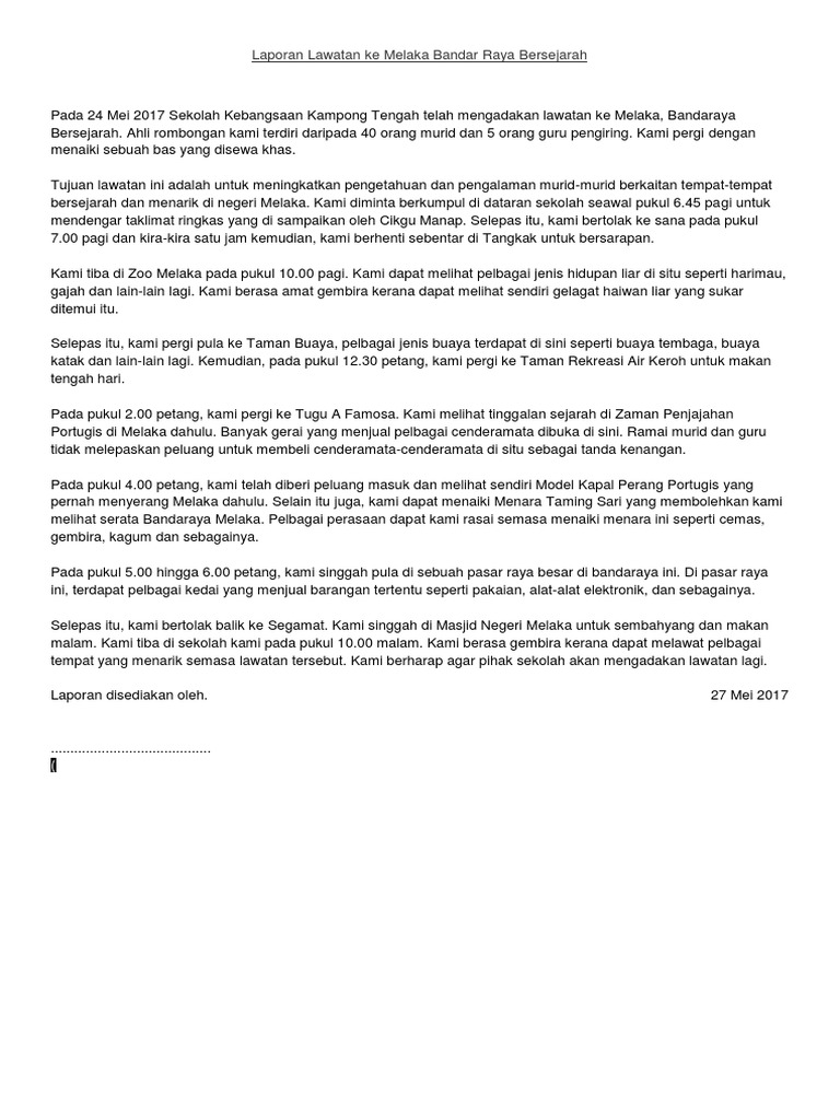 Laporan Lawatan Ke Melaka Bandar Raya Bersejarah Pdf